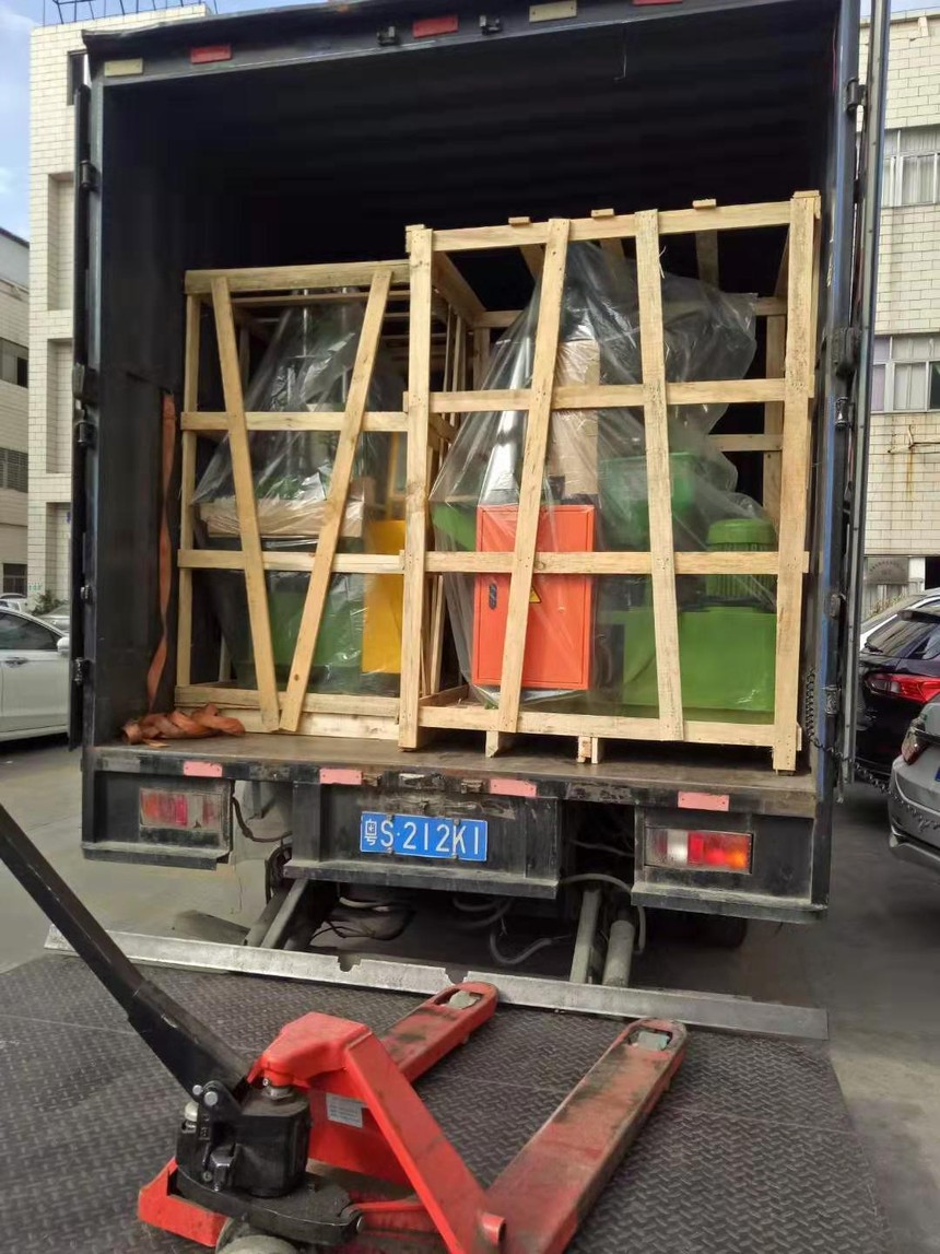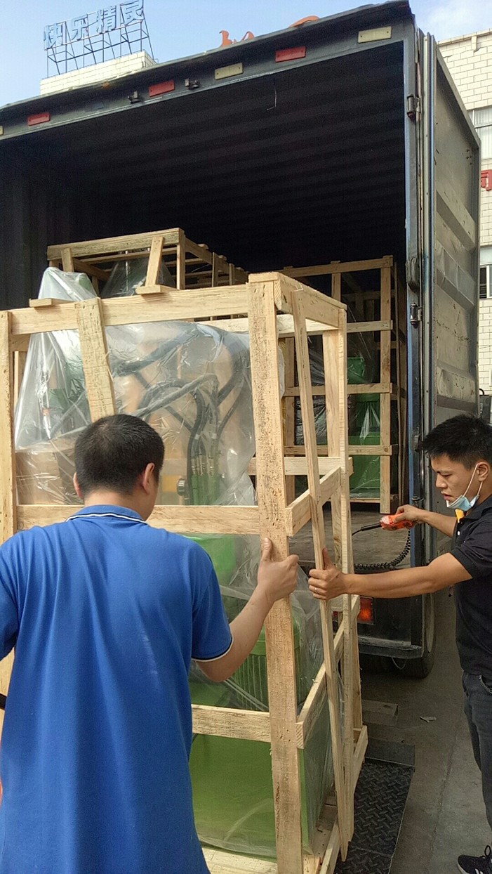 ,幾(jǐ)個裝車師傅(fu)把立式注塑(sù)機打包好,裝(zhuang)入貨車中,随(suí)即貨✍️車發出(chū)。