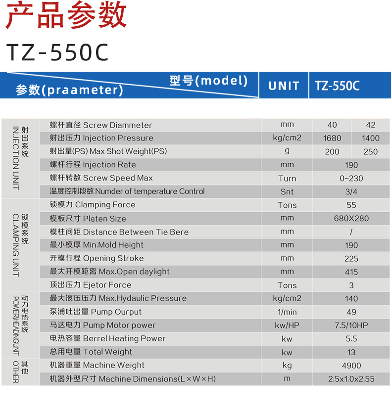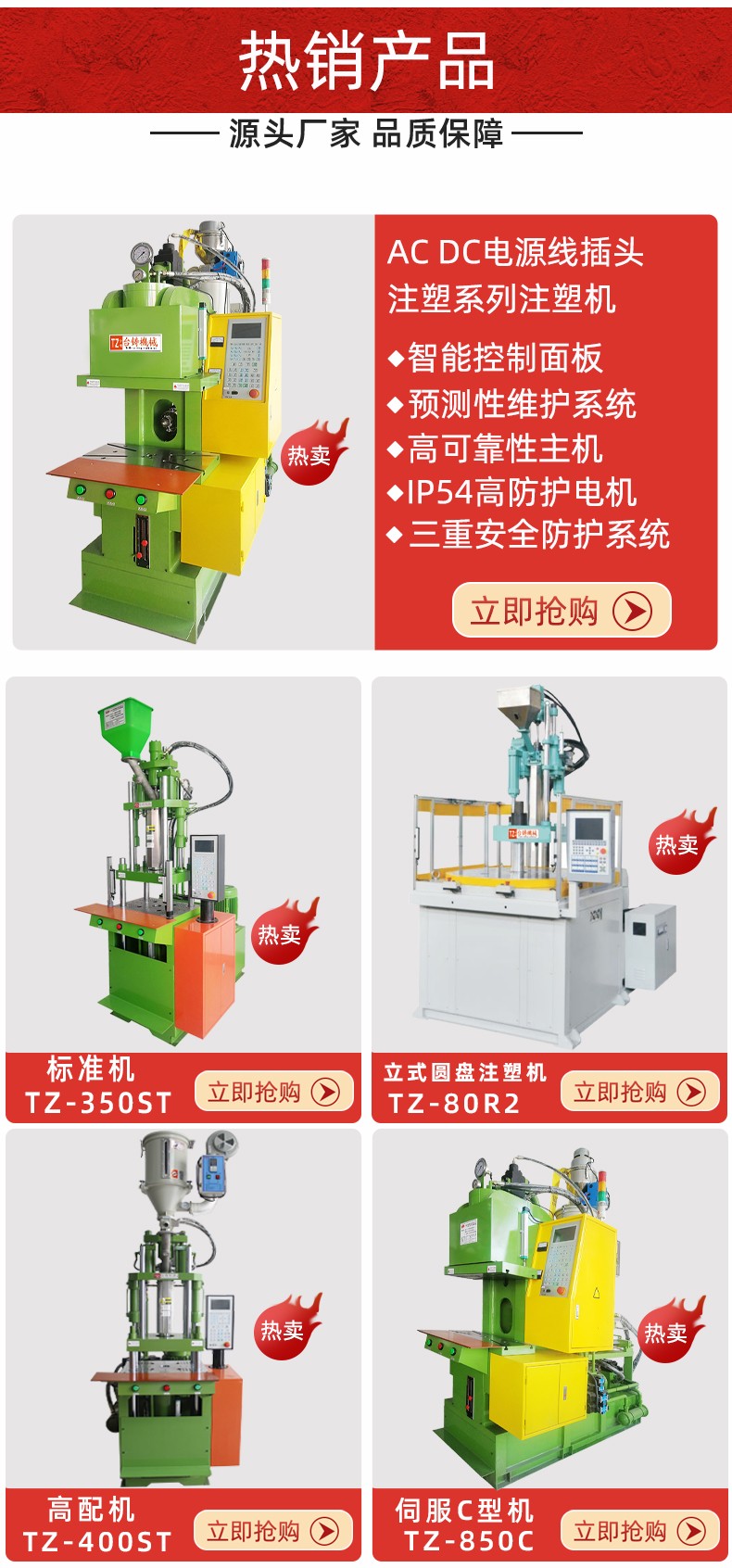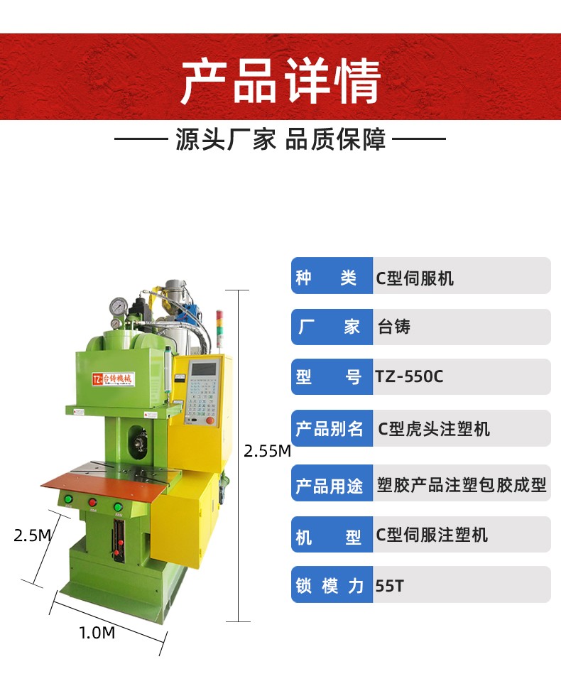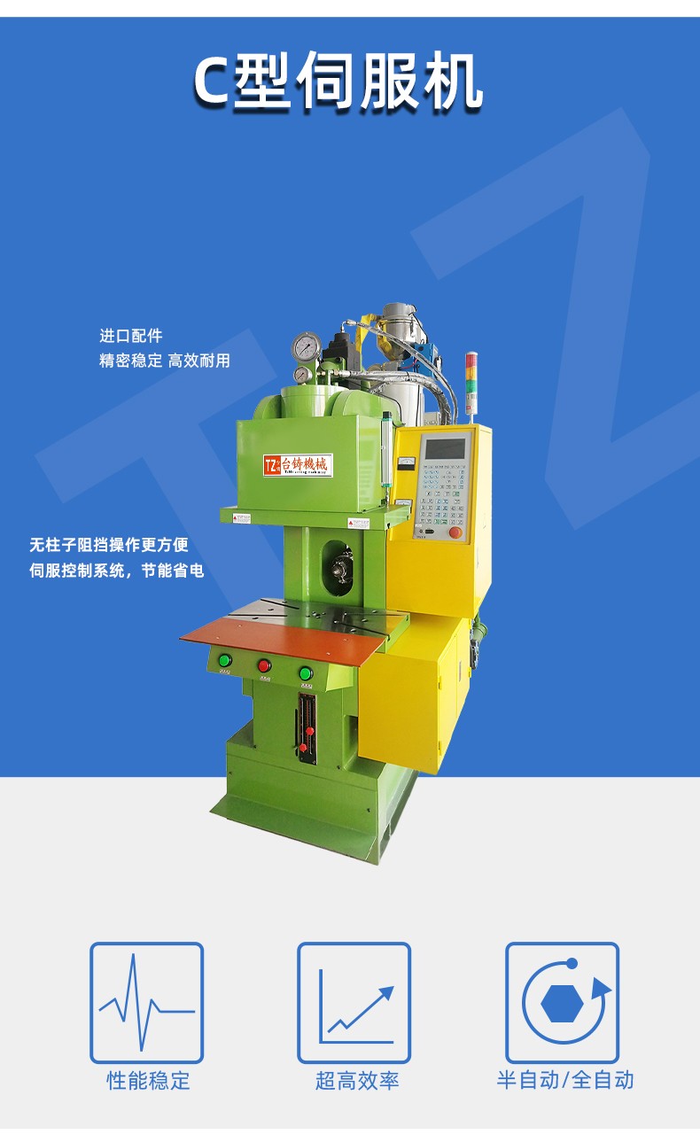 特性: 1.立式合模(mó),卧式射出,機體(tǐ)結構緊湊,射出(chu)有力,适合較大(da)型鑲件成型。 2.C型(xing)機體,操作無柱(zhu)子妨礙,速度快(kuai)。 3.射台高低,可上(shàng)下調整。 4.可選加(jia)裝滑闆、圓盤、提(tí)高工作效率。