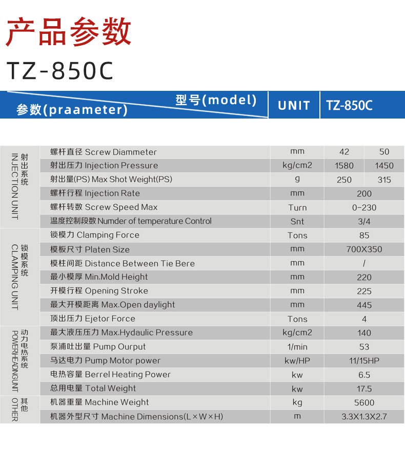 TZ-850C全新伺服(fú)注塑機立(li)式注塑機(ji)